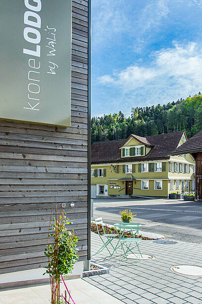 Vier Jahre später können die Gäste hier, im Herzen des Toggenburgs, auch übernachten, grosse Feste feiern oder Seminare durchführen. Mussten die Schneiders bisher bereits bei vielen Essensgästen mit den Sitzplätzen jonglieren, gibt es neu einen «Beiz»-Bereich mit 45 Plätzen, wo sich auch das Dorf zum Jass trifft, einen «Gnuss»-Raum mit 34 Sitzplätzen für den kulinarischen Genuss in ruhiger Atmosphäre, den «Saal» für Anlässe aller Art mit bis zu 200 Personen sowie Räume für Seminare und Aperos. Zu verdanken ist dies einem grossen Erweiterungsbau, der im Mai 2021 nach fast neun Monaten Bauzeit fertiggestellt wurde – und im gleichen Zuge auch die Terrasse vergrössert sowie die «Lodge» gleich gegenüber der Krone eröffnet wurden. Zehn Doppelzimmern, die nicht nur bei den Seminargästen gefragt sind, sondern auch bei Touristen, die etwa mit E-Bike auf der Herztour hier vorbeikommen und dank dem 24-Stunden-Self Check-in ohne Betreuung durch das Krone-Team einchecken können.