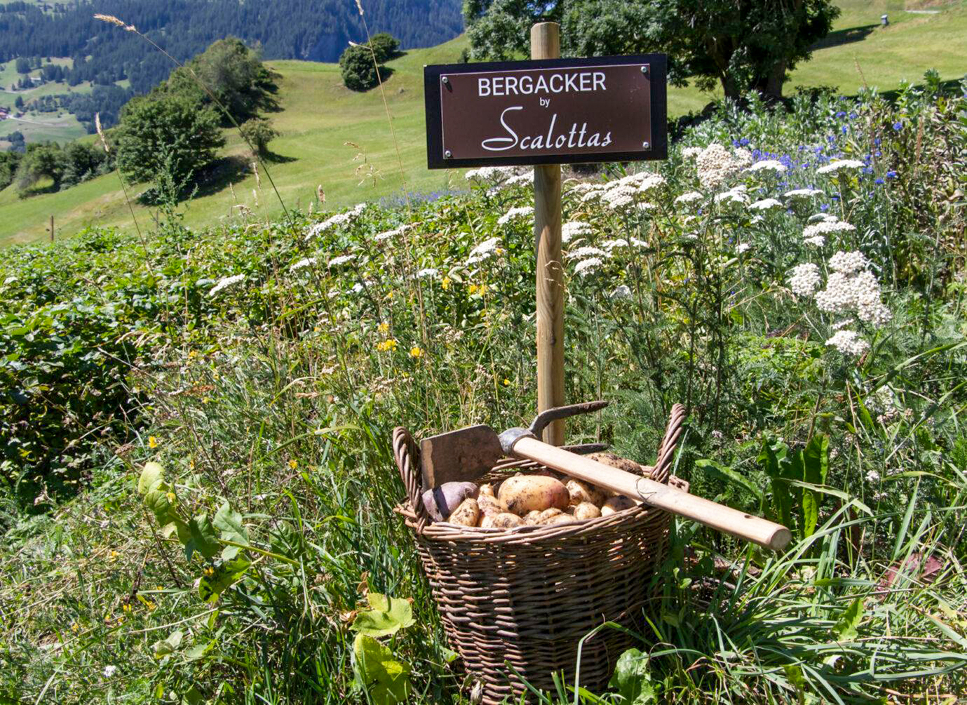 Das Scalottas Terroir steht für ehrliche, regionale Küche auf höchstem Niveau. Küchenchef Hansjörg Ladurner und sein Team verarbeiten fast ausschliesslich Produkte aus der Region und kennen ihre Produzentinnen und Produzenten persönlich. Ein besonderes Highlight ist der eigene «BergAcker», auf dem beispielsweise Kartoffeln, Gerste und Ackerbohnen nach alter Bergbauerntradition angebaut und anschliessend in der Küche verarbeitet werden.