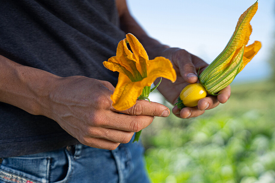 Eine überwältigende Vielfalt gedeiht auf diesem Familienbesitz, den Raphaël Gétaz seit 2017 bewirtschaftet. «Wir sprechen von einer Mikrofarm, weil der Hof im Verhältnis zu anderen Betrieben mit 20 bis 25 Hektaren verhältnismässig klein ist. Und doch produzieren wir hier über 250 verschiedene Gemüse und Früchte in Bio- oder bio-dynamischer Demeter-Qualität», sagt Raphaël Gétaz gegenüber GOURMET. Bio-dynamisch meint eine Landwirtschaft, die eine Art Kreislauf bildet, in der Mensch, Pflanze, Tier und Boden zusammenwirken und sich gegenseitig unterstützen. Die Theorie geht auf den Anthroposophen Rudolf Steiner zurück. Wobei Raphaël Gétaz kein Anthroposoph, sondern lediglich von den Vorzügen des bio-dynamischen Landbaus überzeugt ist, insbesondere von der Bedeutung eines gesunden Bodens. Entsprechend viel Arbeit steckt er in seine Pflege.