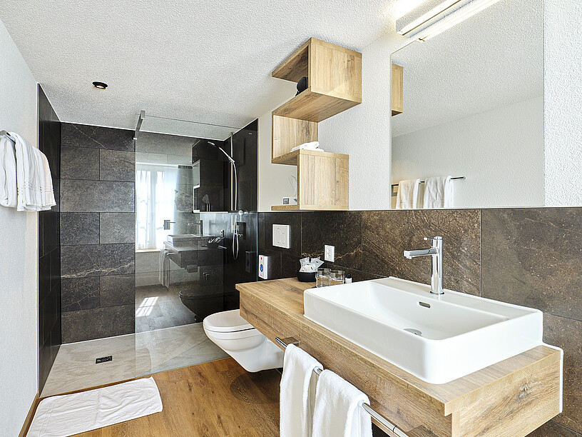 Das Resultat ist ein stimmiger, aufgeräumter Landgasthof, modern und doch gemütlich, ein Interior Design, das nicht nur von Trends geleitet ist, sondern langfristig gefallen soll, grosszügig, auf einen effizienten Betrieb ausgerichtet, hinter welchem sich sehr viel Technik verbirgt. «Die Bausubstanz war alt, der Gasthof denkmalgeschützt, und trotzdem musste er den sicherheitstechnischen Anforderungen von heute genügen, beispielsweise, was den Brandschutz betrifft, der aufgrund der Nutzungsänderung von der Wirtewohnung in die elf Hotelzimmer massiv verstärkt werden musste. Auch der Schallschutz über der alten Holzbalkendecke war eine Herausforderung und musste ebenso eingepasst werden wie Leitungen für die elektrischen und sanitären Anschlüsse in den Hotelzimmern, die dazu etwas an Raumhöhe einbüssten», sagt Raymond Zürcher von der Gschwend AG Gastrobau.