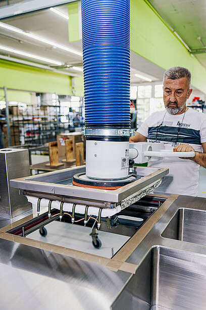 Bis ein Herd aber hier steht, braucht es viele Arbeitsschritte und das Know-how aller über 80 Mitarbeitenden. Für den Start gehen wir ans andere Ende der Halle. Noch während der Gesundheitskrise 2020 wurden hier 900 Quadratmeter Fläche hinzugemietet, um auf das stetige Wachstum zu reagieren, die Produktionskapazitäten zu erhöhen und klare, saubere Prozesse zu gewährleisten. Allgemein beeindrucken die sauberen Arbeitsplätze, die nach der 5-S-Methode organisiert sind: Sortiere aus, was du nicht benötigst, stelle alles ordentlich und nach ergonomischen Gesichtspunkten an einen gekennzeichneten Platz, reinige deinen Arbeitsplatz und deine Arbeitsutensilien selbst, damit du Mängel erkennst, standardisiere und vereinheitliche, habe Selbstdisziplin und verbessere dich ständig. Wieso dieses System? «Wenn du immer direkt findest, was du brauchst, bist du einfach effizienter und konzentrierter», begründet Dr. Paul Schneider ganz nüchtern.