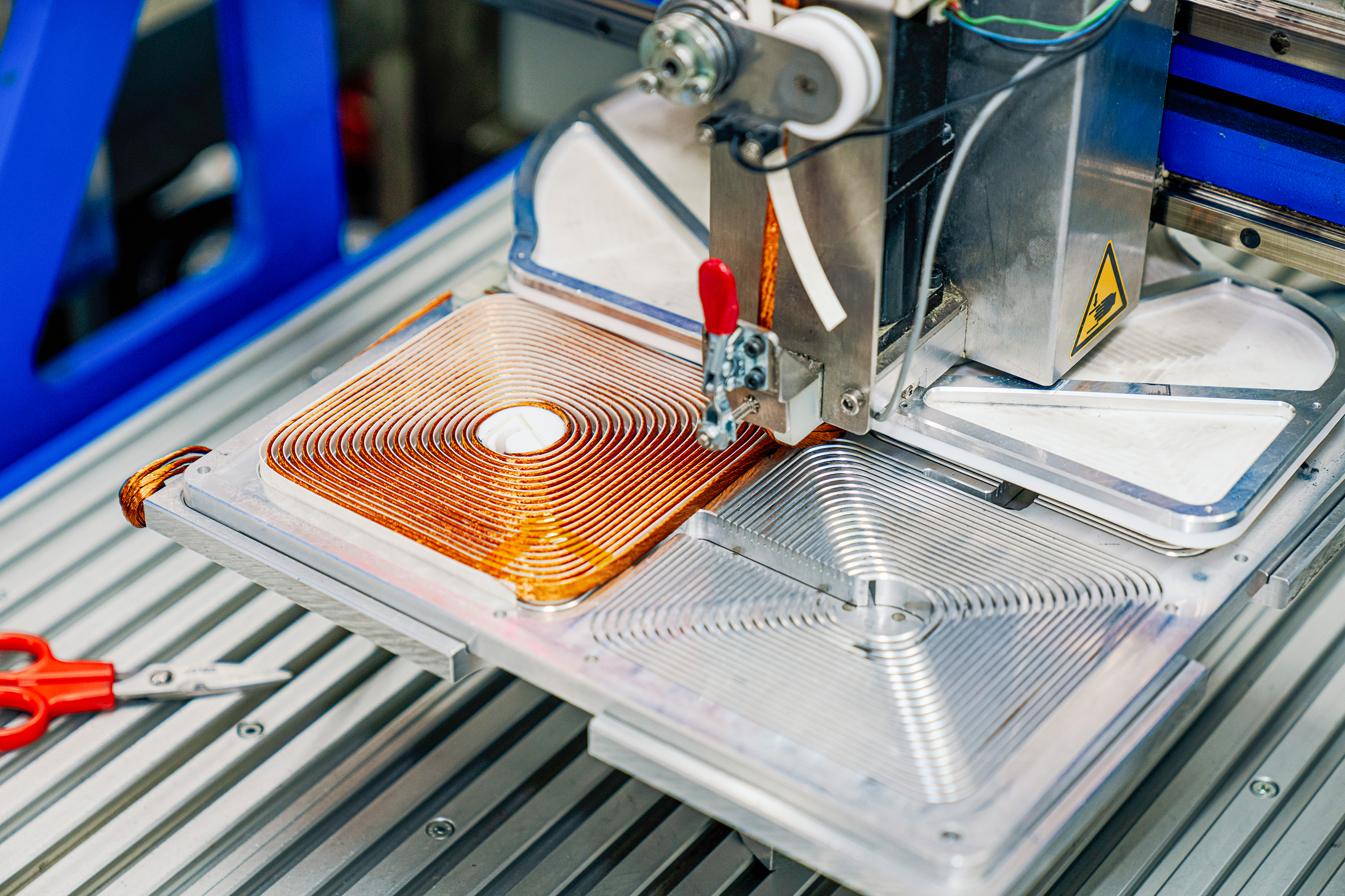 Inzwischen sind wir zurück bei der Endkontrolle – für rund 400 Herdanlagen jährlich die letzte Station, bevor sie ihren jahrzehntelangen Betrieb antreten. Und erst jetzt fällt uns ein kleiner, unscheinbarer Bereich, etwas abgetrennt in einer Ecke, auf. Dabei ist es ein Herzstück der Menu System AG: der Bereich, in dem die Induktionsspulen gewickelt werden. Es ist diese Technik, die Menu System wie niemand sonst beherrscht. Wieso eigentlich nicht auch für Privatküchen? «In der Konzentration liegt die Kraft. Auch Marco Odermatt spielt neben seinem Kerngeschäft, dem Skisport, nicht auch noch professionell Tennis oder macht Leichtathletik», zieht Dr. Paul Schneider einen Vergleich. «Dafür ist er der Beste in dem, was er macht. Und das ist auch Menu System: unbestrittener Qualitäts- und Marktführer für professionelle, massgeschneiderte Induktionsherdanlagen.»