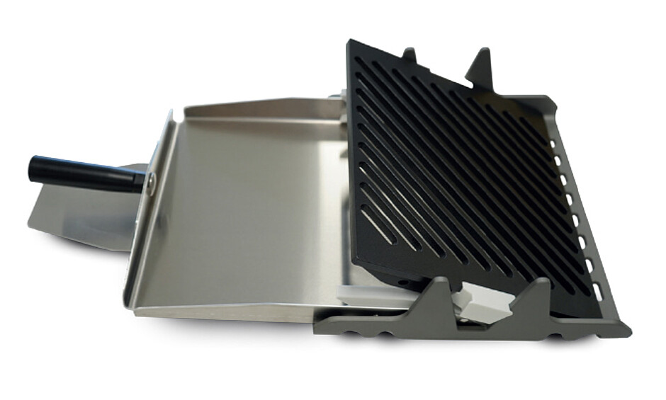 Der neue Merrychef Panini-Grill ersetzt die Garplatte und sitzt auf Haltern des Gar-Innenraums, so dass der High-Speed Ofen auch dann benutzt werden kann, wenn der Panini-Grill nicht in Gebrauch ist. Mit dem Merrychef-Schieber kann das Panini/Sandwich mühelos zwischen die obere Grillplatte und die untere Platte geschoben werden. Sobald der Schieber entfernt wird, senkt sich die Grillplatte, um das Grillgut zusammenzudrücken. Wenn der Panini-Grill einmal nicht genutzt wird, können die Speisen einfach auf der Oberseite des Grills gegart werden, was seine Flexibilität weiter erhöht.