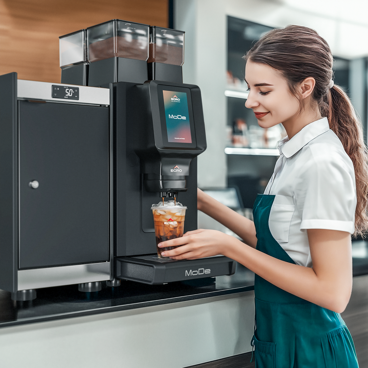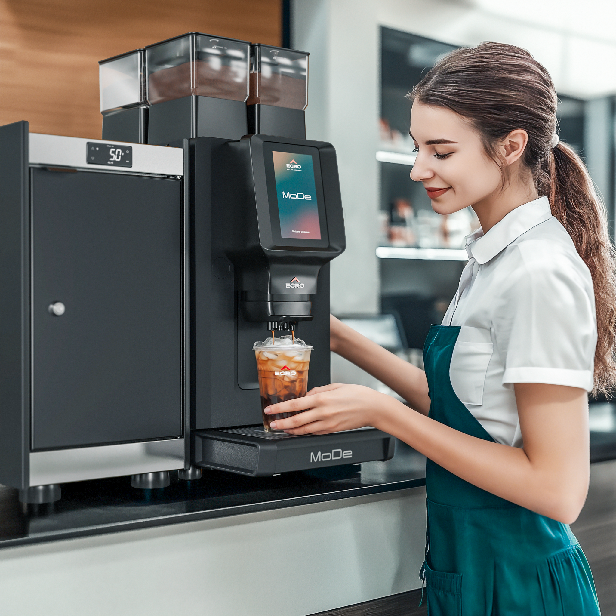 Egro MoDe bietet weiterhin hohe Leistung, Zuverlässigkeit sowie Vielseitigkeit und garantiert ideale, massgeschneiderte Lösungen für alle, die ein hochwertiges Café-Menü mit Kaffeegetränken, frischer Milch und löslichen Produkten wünschen.