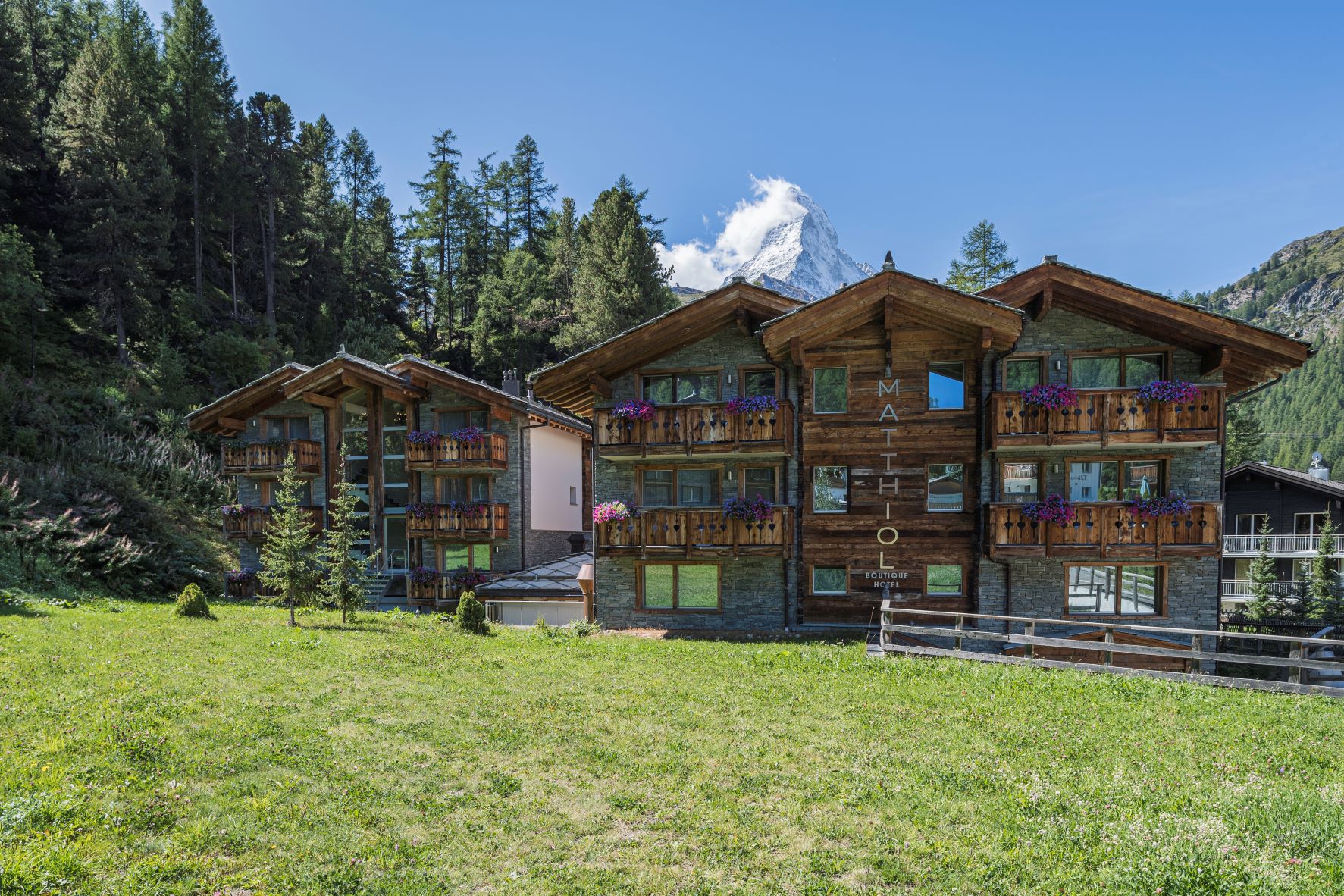 Direkt am Waldrand und mit Blick aufs Matterhorn gelegen, befindet sich das Matthiol Boutique Hotel mit seinen 31 Zimmern. Natürliche Materialien und sanfte Farben sorgen für eine moderne, gemütliche Atmosphäre. Das Hotel lockt mit individuellem Service, privaten Spa-Bereichen und Blick auf den schönsten Gipfel der Alpen. Das Hotel-Restaurant „Filet et Fils“ bietet mit seinem modernen Ambiente und den alpinen Elementen neben her-vorragendem Service auch die richtige Stimmung. Die Matthiol Serviced Apartments sind die ideale Unterkunft in grosszügigem Ambiente für Familien und Gruppen.