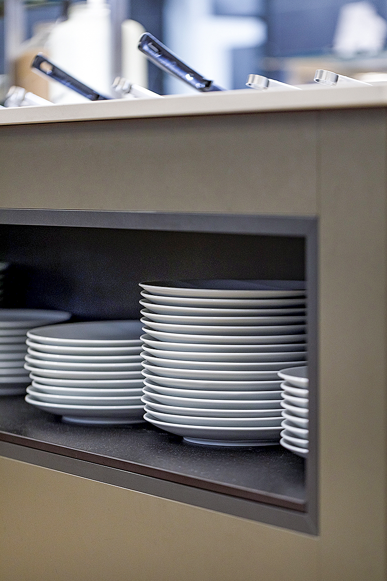 Mit sechs Standorten in der Schweiz bietet die heer AG nicht nur eine grosse Reichweite innerhalb der Schweiz, sondern erfüllt jeweils auch den Anspruch, ein regionales Unternehmen zu sein. Der Hauptstandort Reinach ist nur ein Steinwurf von Bubendorf entfernt. «Natürlich ist nicht in jedem Projekt unser Gesamtangebot gefragt. Bei Bachem haben wir die gesamte Kücheneinrichtung gemäss den Plänen von Profiplan AG installiert, die Einbaugeräte im Free-Flow-Bereich organisiert und sämtliche Chromstahlbauten in der Küche und im Buffetbereich ausgeführt», erklärt Daniel Keller.