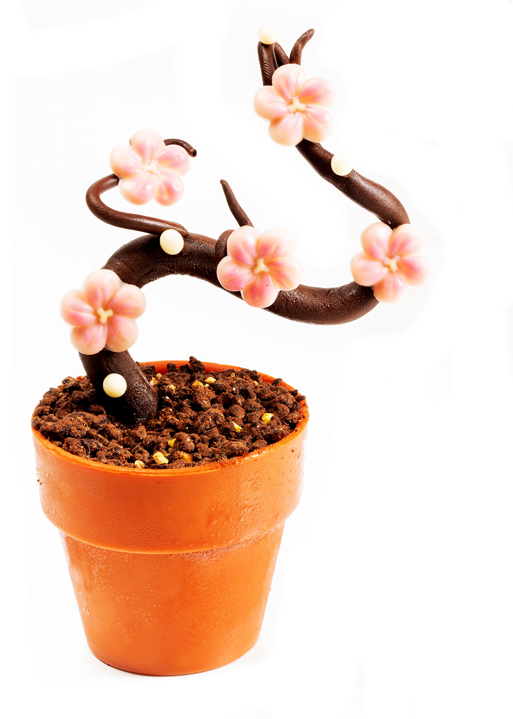 Zum einen gibt es den beliebten «Flower Pot Cup» – ein kleines Töpfchen aus zarter Schokolade in Blumentopf-Optik – in einer praktischen, kleineren Grösse. Ideal für Dessert-Buffets oder als süsser Hingucker auf dem Dessert-Teller. Ergänzt wird das Sortiment durch die elegante «Peach Blossom» - eine zarte Blütendekoration aus hochwertiger Schokolade. Beide Produkte harmonieren hervorragend miteinander und bieten unzählige Möglichkeiten für kreative Dessert-Kreationen.
