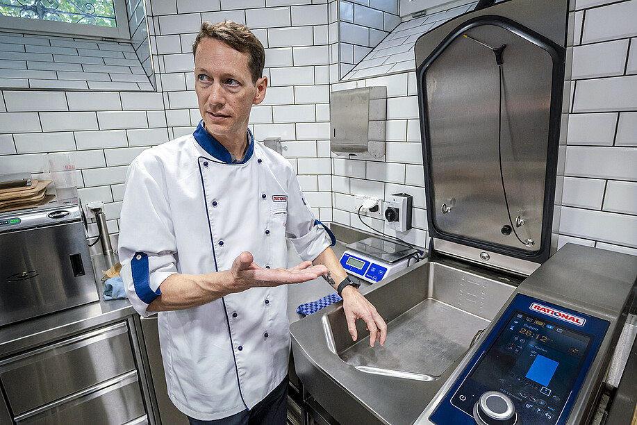 Fabian Dumitrache: Das ist schon sehr cool und die perfekte Ergänzung zum iCombi Pro. Wobei es diesem auch nicht langweilig wird, etwa für Gemüse oder Reis. Natürlich wäre das auch im iVario Pro möglich, aber so kann ich beide Geräte im à-la-Carte-Bereich flexibel nutzen. Gleichzeitig habe ich mit dem iVario Pro die Möglichkeit, zu grillieren oder zu frittieren, und mit dem iCombi Pro zum Beispiel Brot aufzubacken. Also ist tatsächlich quasi alles mit zwei Geräten abgedeckt.
