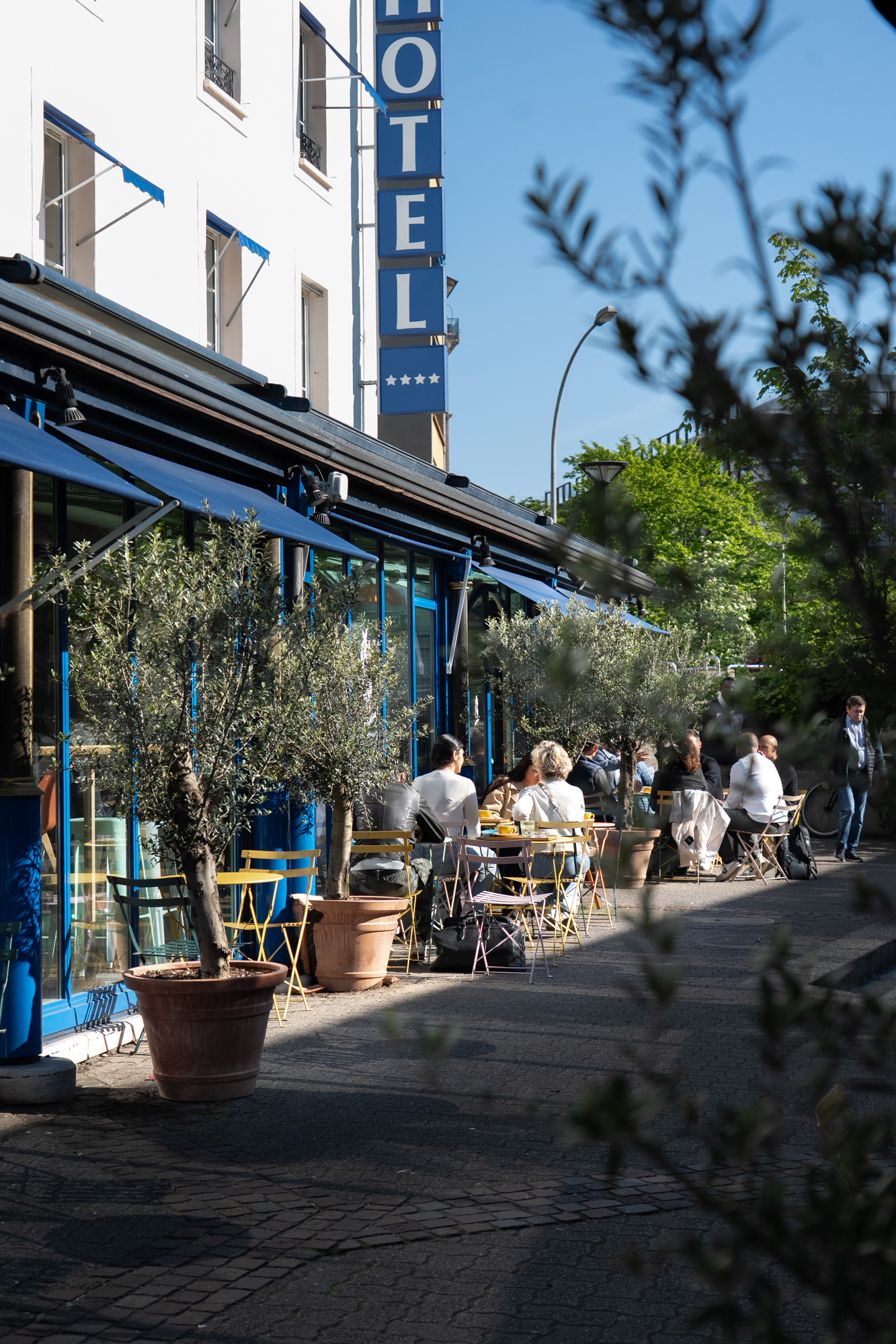 Die Sonne scheint auf den Genfersee - diese schöne Aussicht geniesst man auf der Zugstrecke in Richtung Bahnhof Cornavin in Genf. Dort angekommen, geht‘s durch die Unterführung des Bahnhofs. Beim Verlassen der Passage fällt der Blick sofort auf die schöne mediterran-blaue Schaufensterfront des Cafés Oh Martine! Die Terrasse ist bereits gut gefüllt und strahlt Gemütlichkeit aus. Man fühlt sich sofort nach Südfrankreich versetzt.