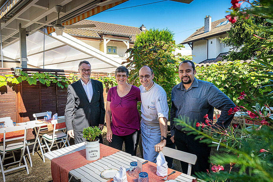 Das Sortiment von Transgourmet «Origine» umfasst rund 300 Produkte. Sie alle stehen für eine hervorragende kulinarische Qualität, für eine abgesicherte Nachhaltigkeitsleistung und für eine authentische Produkt- und Produzentengeschichte. «Für uns ist es wichtig zu wissen, woher ein Produkt stammt und unter welchen Bedingungen es hergestellt wird», erklärt der Küchenchef. Bei «Origine» wird jeder Produzent porträtiert, und jedes Produkt hat seine ganz eigene Geschichte. Deshalb setzt das Gastgeberpaar seit bald fünf Jahren auf die Lebensmittel von «Origine». «Die Familie Pelz gehört zu unseren Kunden der ersten Stunde», weiss Jean-Michel Haffen, Geschäftsführer Transgourmet/Prodega Satigny. Er war es, der seinerzeit die Nachhaltigkeits-Eigenmarke von Transgourmet schmackhaft machte und Anick und Pierre Pelz sofort davon überzeugen konnte. Mit dieser Einkaufsphilosophie möchte der Gastronom beweisen, dass man mit qualitativ hochstehenden Produkten aus der Schweiz – wenn immer möglich in Bioqualität –als Gastronom Erfolg haben kann: «Viele Gastronomen in der Region Genf kaufen in Frankreich ein. Das finde ich schade – ich möchte die Wertschöpfung im Land behalten und Schweizer Produkte für meine Schweizer Küche anbieten.» Er gibt zu, dass er es am Anfang mit dieser Philosophie nicht leicht hatte.