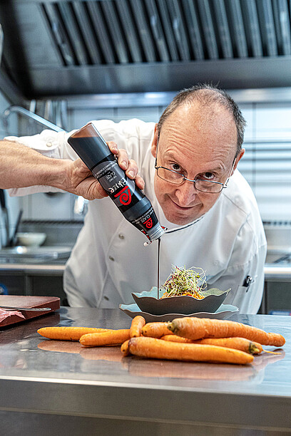 «Die Familie Pelz mit der «Auberge des trois Coqs» sind für uns beste Markenbotschafter», fühlt sich Jean-Michel Haffen geehrt. Der Restaurateur verwendet viele Produkte aus dem «Origine»-Sortiment und probiert auch gerne Neues aus. «Origine Produkte erfüllen höhere Standards als das Gesetz verlangt. Produzenten fördern beispielsweise gezielt die Biodiversität, setzen chemisch-synthetische Pestizide reduziert ein oder verzichten gänzlich darauf. Beim Tierwohl gilt die tierfreundliche Stallhaltung BTS als Basiskriterium. «Den höchsten Nachhaltigkeitsgrad erhalten unsere Kunden bei Demeter und Bio-Suisse-Knospe-Produkten», hält Jean-Michel Haffen fest. Die absolut transparente Kommunikation bei den Produktgeschichten verbindet in einzigartiger Weise den Wunsch nach Nähe und Ursprünglichkeit mit gesellschaftlicher Verantwortung. «Schliesslich ist Ehrlichkeit der Grundstein des Vertrauens und des Erfolgs unserer Produkte.»