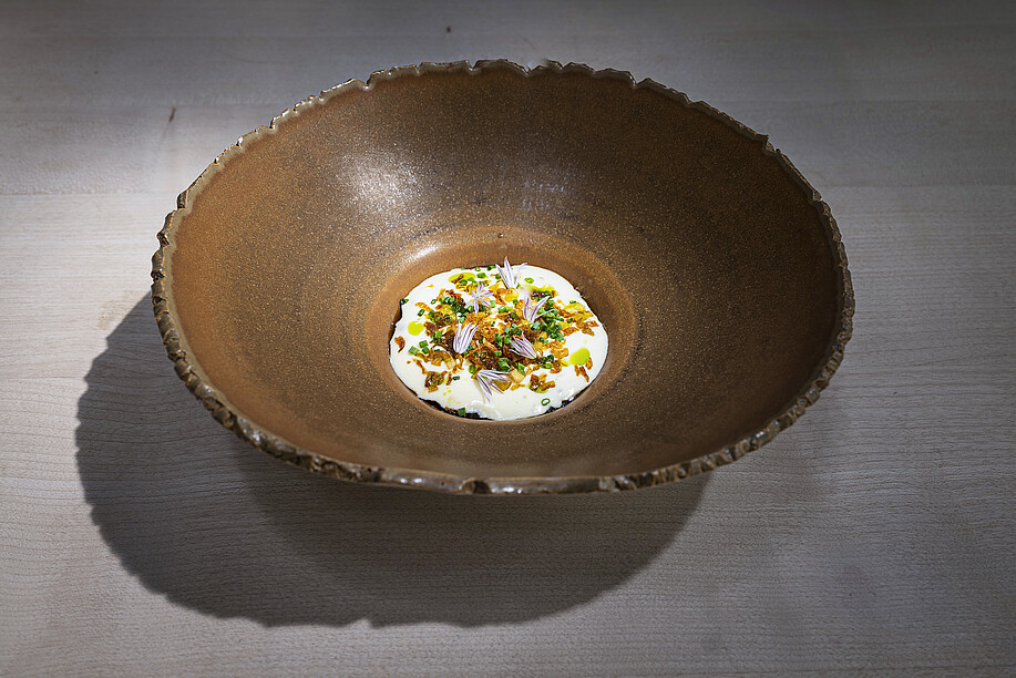 Timo Fritsche, der Kochkünstler am Herd, ist ebenfalls kein Neuling in seiner Brigade. «Timo war lange bei mir im Schloss, zuletzt als mein Stellvertreter. Er kennt meinen Perfektionismus ziemlich gut, so dass ich ihm beim täglichen Kochen viel freie Hand lassen kann», bestätigt der 44-jährige Andreas Caminada. «Die neun bis zwölf Gänge des vegetarischen Menus werden sich je nach Reife und Verfügbarkeit der Zutaten oft ändern, und Timo soll sich beim Gang durch Garten und Beete inspirieren lassen. Im ‹Oz› deckt nämlich unser Garten den Tisch.»