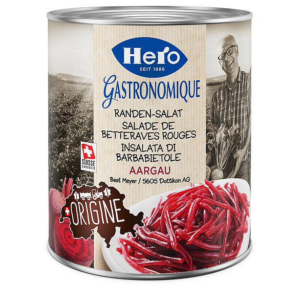 Damit gewährleistet Hero Frische, Vertrauen, Verantwortungsbewusstsein sowie Ökologie. Das Unternehmen kommt so einem Wunsch vieler Kundinnen und Kunden entgegen. Denn Konsumentinnen und Konsumenten wünschen sich offene Transparenz über Herkunft und Herstellung der Lebensmittel. Nicht nur zuhause. Gäste mögen Gastgeber, die ihre Speisen mit Leidenschaft zubereiten und über deren Ursprung und Herkunft Bescheid wissen. Hero – das Schweizer Traditionsunternehmen aus Lenzburg – möchte die Profis in Gastronomie und Hotellerie mit Produkten unterstützen, die Wert legen auf Regionalität, Transparenz und Herkunft. «Mit Hero habe ich eine Marktpartnerin gefunden, die meine Leidenschaft für regionales Gemüse teilt», erklärt beispielsweise auch Beat Meyer, warum er als Randen-Produzent gerne mit seinem Namen für die Hero Origine-Produkte bürgt.