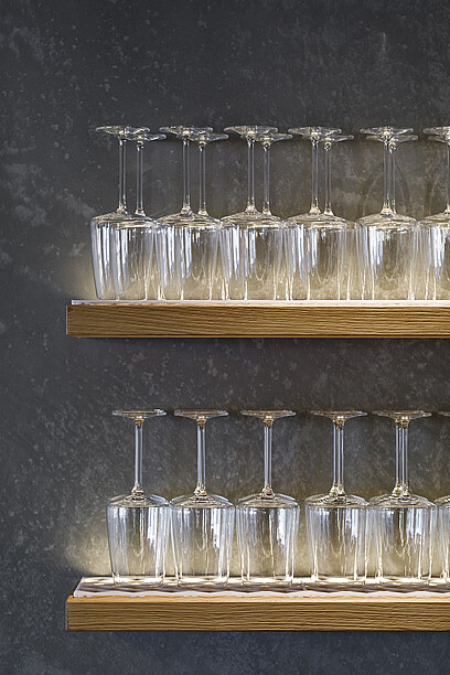 «Wir setzen Feng-Shui nicht in der Tiefe um, machen intuitiv aber bereits vieles richtig. Wir vermeiden versteckte Ecken oder platzieren sicher keine Spiegel am Ende eines Korridors oder im Eingangsbereich. Aber natürlich geht eine umfassende Feng-Shui-Gestaltung über unser Basiswissen hinaus, und so ziehen wir auf Wunsch ausgebildete Beraterinnen und Berater bei», betont Roland Walker gegenüber GOURMET. In diesem Fall war es ein Freund von Geschäftsführer Damian Sidler. Er schaffte die Voraussetzungen, damit das Chi fortan harmonisch schwingend durch den Raum im Restaurant iheimisch fliessen, ein paar Runden drehen und wieder abziehen kann. Die Lounge gilt aus Feng-Shui-Sicht als Partnerecke, und eine zum Wandbild modellierte Buche am anderen Restaurantende stärkt den Westen.