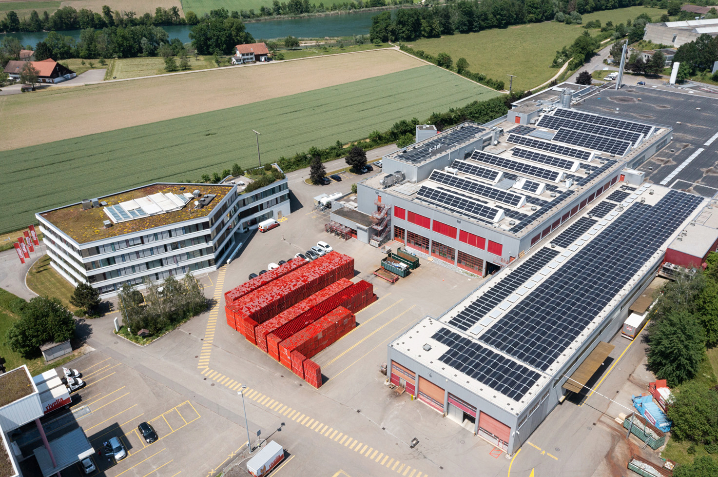 Anfangs Juni 2023 hat die Schweizer Getränkeherstellerin Rivella an ihrem Sitz in Rothrist die erste Photovoltaik-Anlage in Betrieb genommen. Die Anlage auf den Dächern der Produktion und des Lagers ist über 3500 Quadratmeter gross. Sie besteht aus 1700 Paneelen mit sieben Wechselrichtern. Damit kann die Rivella Group in Zukunft pro Jahr rund 700 000 Kilowattstunden umweltfreundlicher Solarstrom produzieren. Dies entspricht dem durchschnittlichen Verbrauch von 150 Einfamilienhäusern.