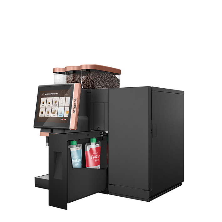 Das neue Reinigungssystem Schaerer ProCare stellt die bislang bekannte Systemreinigung professioneller Kaffeemaschinen auf den Kopf. Bis zu drei Monate lang übernimmt das zum Patent angemeldete Konzept vollautomatisch die Reinigung des Kaffee- und Milchsystems – ohne Zutun der Servicemitarbeitenden.