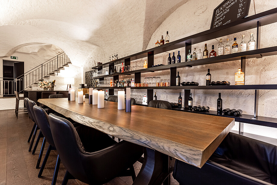 Eine besondere Art, um das Wochenende einzuläuten, bietet die Lounge im 600-jährigen Gewölbekeller. Sie ist jeweils am Freitagabend das Reich von Thomas und Claudia Zindel. Mit viel Freude und Herzblut bedienen sie hier die Gäste. Beliebt in der warmen Jahreszeit ist der Garten mit seinen schattenspendenden Platanen. Und nicht zuletzt sorgt das Bistro für ein unkompliziertes Mittagessen oder für Kaffee und Kuchen in gemütlicher Atmosphäre. Herzlichkeit, Gastfreundschaft, Herzblut und Liebe zum Detail sind inbegriffen.