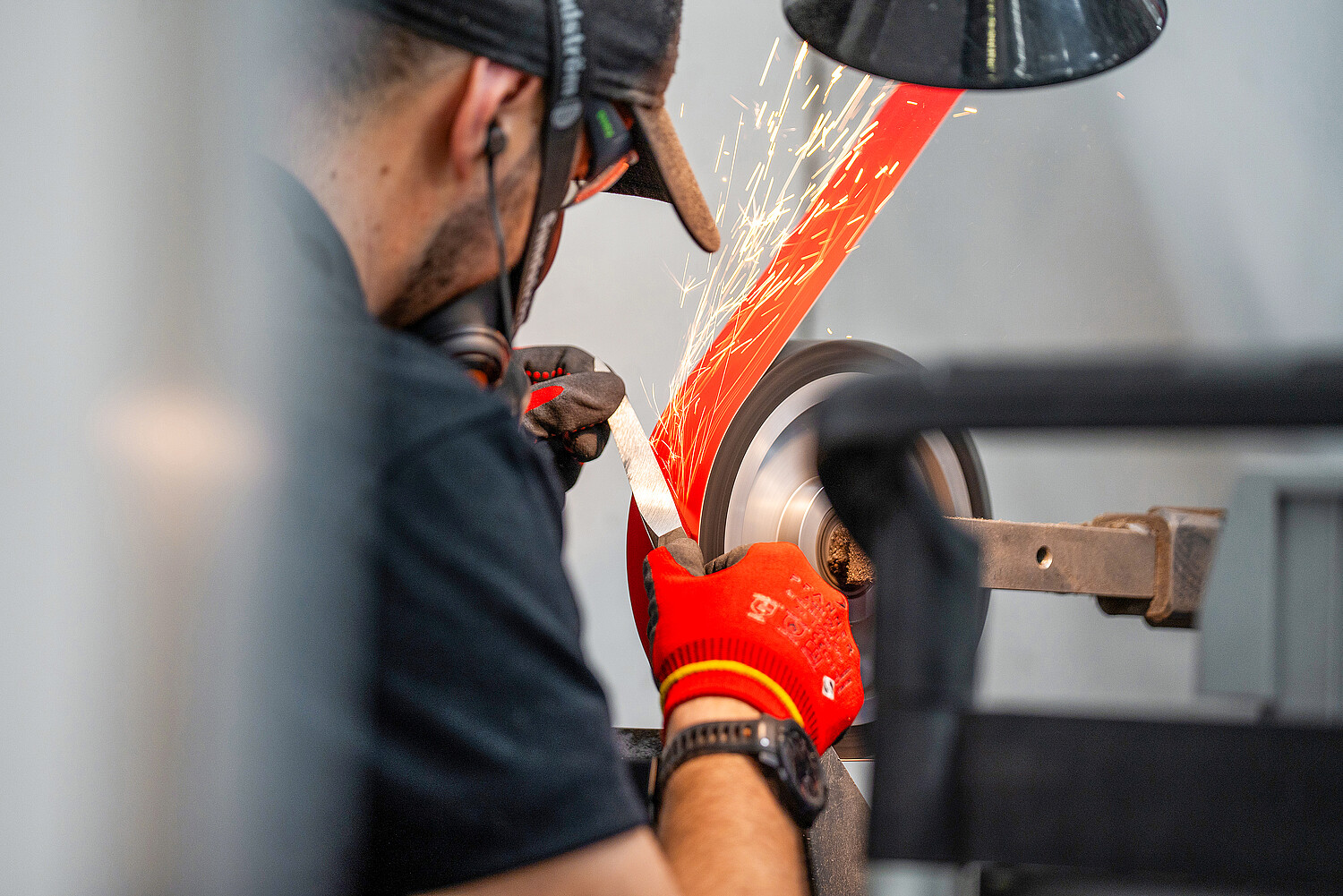 Vom Schmieden des heissen Stahls im Emmental bis zum letzten Klingenschliff werden die Messer von Hand in der Schweiz hergestellt. Die Feinverarbeitung und der Handabzug werden in der sknife Messermanufaktur in Biel von Messerschmied Timo Müller und seinem Team vollbracht.