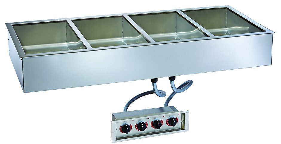 Auch hier hat die bewährte Halo-Heat-Technologie ihre effizienten Wärmekabel im Spiel: Beheizte Einbau-Wannen (Hot Wells) mit kontrolliert gleichmässiger Wärmequelle, die im Gegensatz zu Bain-Maries weder Rohrleitungen noch Wasserinstallationen, sondern lediglich einen Stromanschluss benötigen. Die sanfte Halo-Heat-Wärme umgibt die Speisen, ohne sie zu übergaren oder auszutrocknen. Der Verzicht auf das Wasserbad erleichtert ausserdem Reinigung und Unterhalt und überzeugt auch in punkto Sicherheit.
