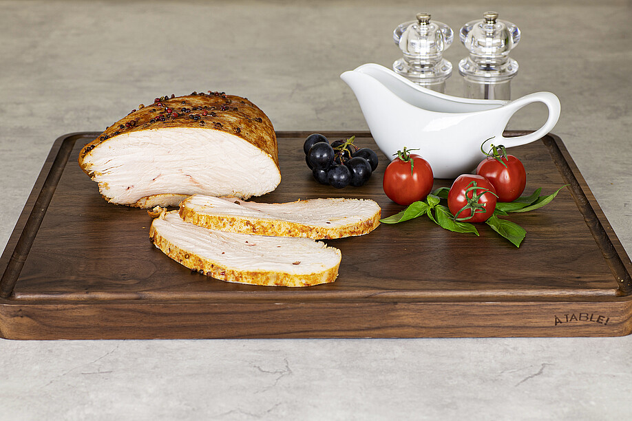 - Weniger Food-Waste: Braten regenerieren oder kalt servieren. Dank dem hohen Feuchtigkeitsgehalt und dem gebundenen Fleischsaft in hoher Qualität möglich.