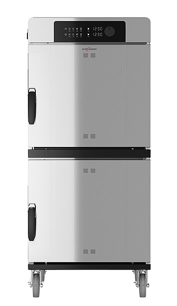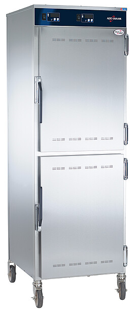Die Warmhaltegeräte von Alto-Shaam sind in verschiedenen Grössen und Ausführungen erhältlich und halten auch grosse Mengen von Speisen warm. Besonders grosszügig konzipiert ist der Doppelkammer-Wärmeschrank 1200-UP, welcher aus zwei individuell regelbaren Wärmekammern besteht mit je 16 Einschüben für 2/1 GN-Grösse. Auch hier ist die Halo-Heat-Technologie im Einsatz. Die Vorzüge auf den Punkt gebracht: