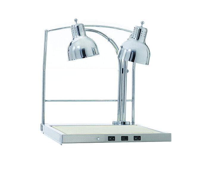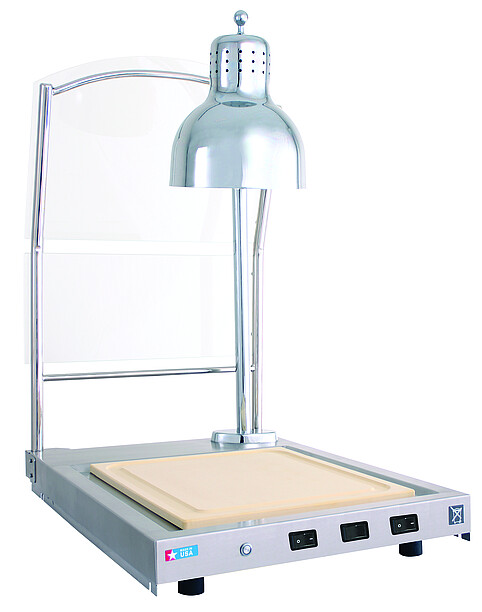 Die Heiss-Tranchierstationen CS-100 und CS-200 mit Einzel- und Doppellampen für einen Braten von 31,7 kg halten Speisen rundum warm. Die Halo-Heat-Wärme strahlt von der Tranchier-Platte sowie über die Heisslampen auf das Produkt und sorgt für konstante Temperaturen, ohne dass Speisen weitergaren oder austrocknen.
