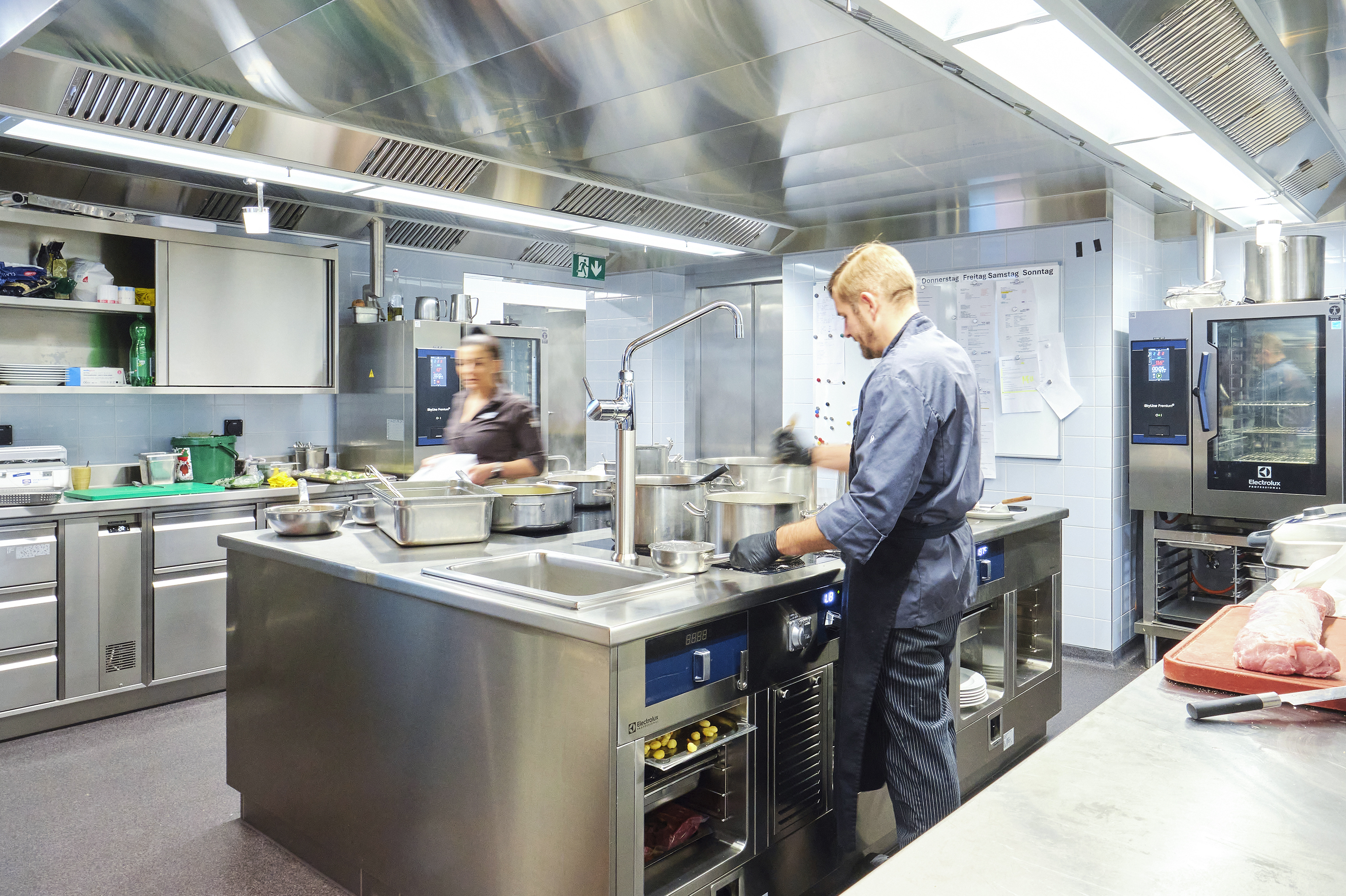 Zusätzlich lieferte Electrolux Professional zahlreiche Einzelgeräte, vom Salamander über den Gemüseschneider TRS bis hin zu zwei SkyLine Premium-S-Öfen und einem SkyLine Chill-S Schockkühler/Schockfroster mit je zehn GN 1/1. «Die Küche ist das Ergebnis einer detaillierten Bedarfsanalyse und Küchenplanung, bei der wir im engen Austausch mit Kunden und Architekten jeweils unser eigenes, breites Fachwissen zu Küchentechnik und -abläufen einbringen», erklärt Electrolux-Professional-Regionalverkaufsleiter Beat Clement. «Wir arbeiten auf Wunsch aber selbstverständlich auch jederzeit mit externen Küchenplanern zusammen.»