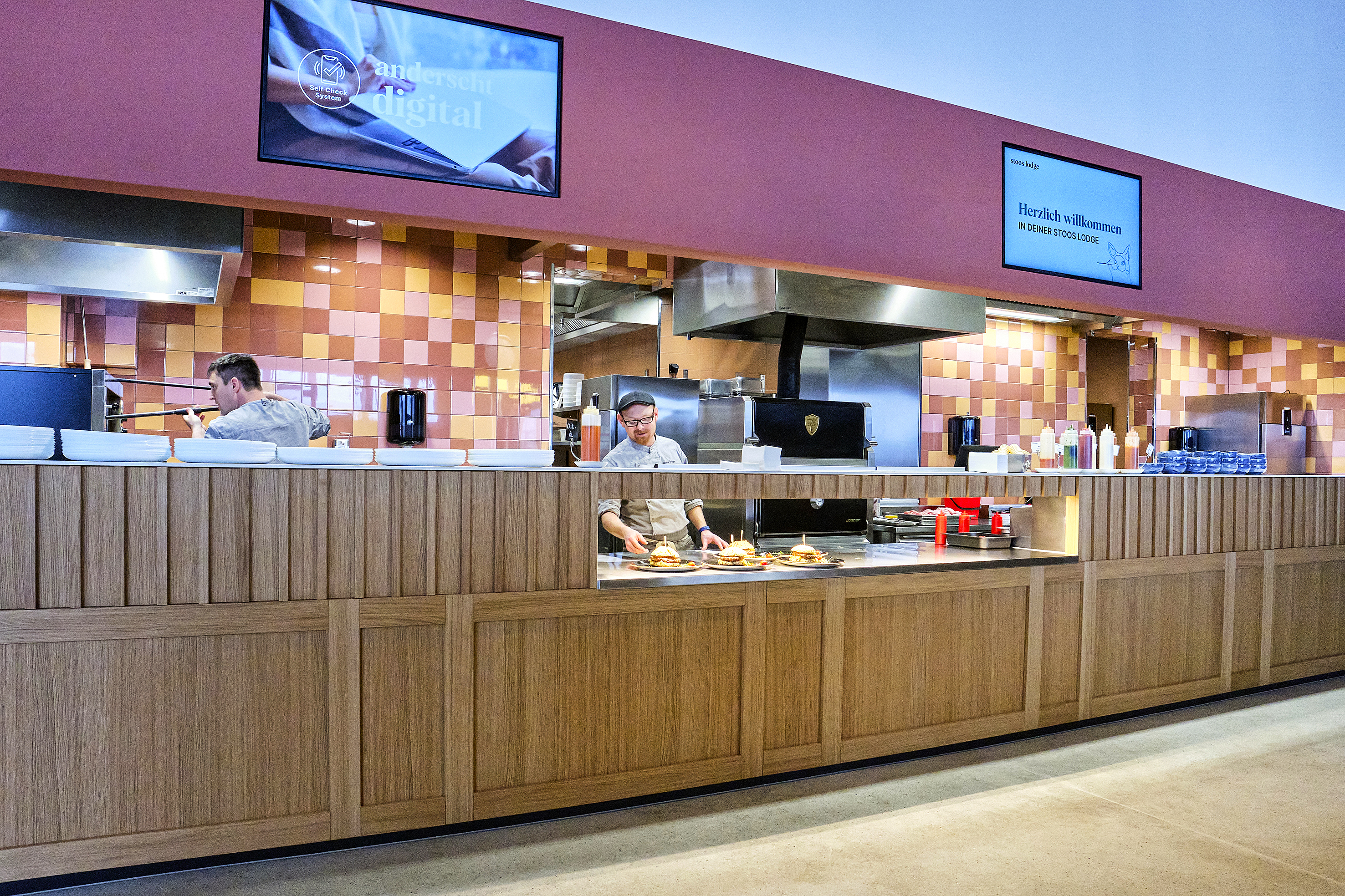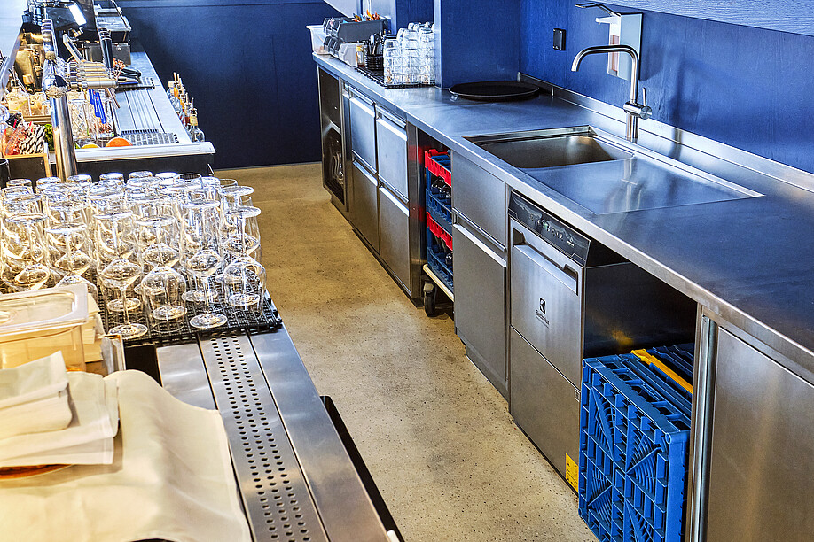 Das spezielle Teil-Servicesystem erforderte jedoch eine besondere Bauplanung. Hauptaugenmerk lag in der Umsetzung funktionierender Abläufe aufgrund der verschiedenen Gästebedürfnisse. «Wir haben rund zehn Versionen überarbeitet, bis wir die beste Lösung für unser Konzept fanden», erklärt René Koch, Maschinenbau-Ingenieur HTL. Dem Bauherrn war wichtig, für die Planung und Ausarbeitung einen Partner zu finden, der die Anforderungen verstand und flexibel auf sich aufdrängende Anpassungen reagierte. Während die Verantwortlichen in Sachen Innendekoration und Design auf das Innenarchitekturbüro IDA 14 setzten, holten sie sich für die Umsetzung der Kücheninfrastruktur mit der Electrolux Professional AG eine Partnerin ins Boot, welche sie aus vorherigen Kooperationen bereits kannten.