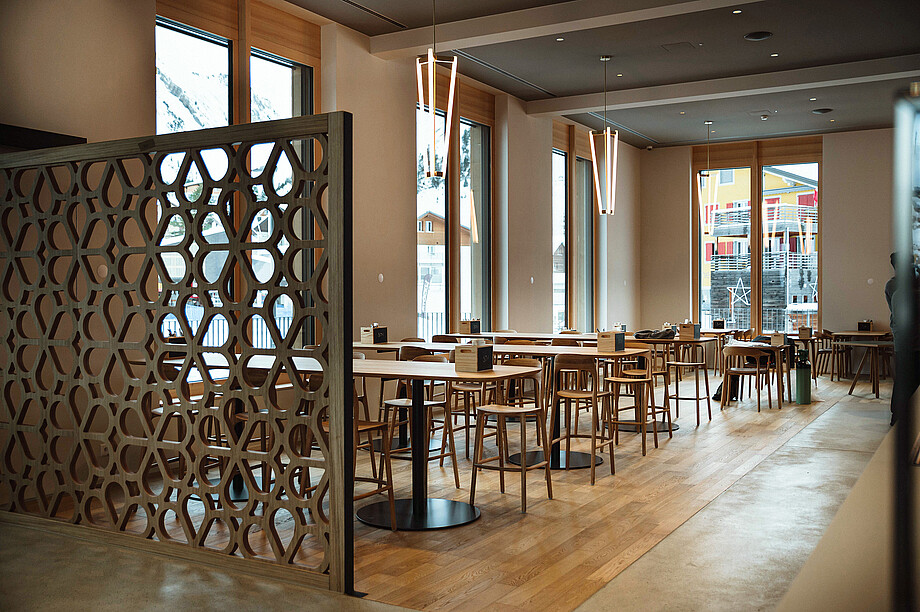 Das Hotelkonzept der Stoos Lodge ist einzigartig: Hier bekommen Gäste alles, was sie wünschen, und bezahlen nur, was sie auch wirklich brauchen. Ob Frühstück, Zimmerreinigung oder Kinderbetreuung — jeder Gast kann den Aufenthalt nach seinen persönlichen Bedürfnissen individuell zusammenstellen. Die gesamte Customer Journey wird stark digitalisiert. Von der Buchung über die Self-Check-in und -out Counter beim Hoteleingang bis hin zum digitalen Zimmerschlüssel auf dem Smartphone. Ein Infopoint ersetzt die klassische Hotelreception und dient als zentrale Auskunftsstelle bei Fragen rund um den Aufenthalt. In der Lodge trifft Gross auf Klein, Familie auf Business und urbaner Lifestyle auf Schwyzer Tradition. Das neu eröffnete Hotel bietet auf einer Fläche von 500 Quadratmetern Erholung im Sauna- und Fitnessbereich, während die einladende Lobby inklusive Bar und Raucher-Lounge für gemütliche Abendstunden sorgt und obendrein eine atemberaubende Sicht auf die Mythen und die weitere Berglandschaft präsentiert. Einzigartig ist der 200 Quadratmeter grosse Indoorspielplatz – vom Restaurant aus können die Kinder auf einer 8 Meter hohen Rutschbahn direkt in die Spielwelt hinabsausen. Eine zentrale Bedeutung kommt zukünftig auch der hauseigenen Kita zu. Diese steht nicht nur den Hotelgästen, sondern auch den Stoos-Bewohnenden und den Mitarbeitenden zur Verfügung.