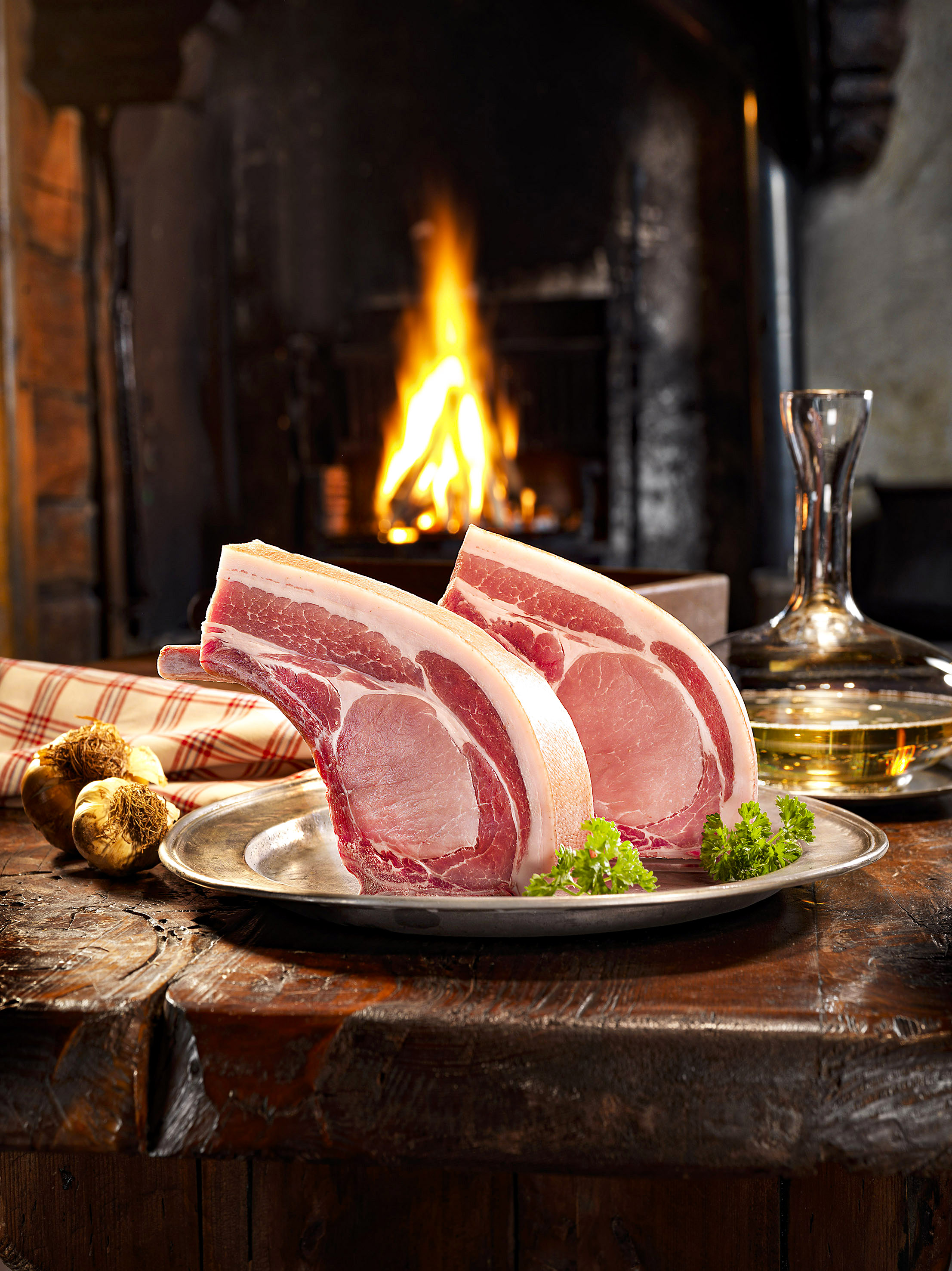 Das Schweinefleisch hat mehr zu bieten als Schnitzel und Rohschinken: Die besten Stücke werden als «Swiss Gourmet Grand Cru Porc» am Knochen gereift. Dabei erhalten sie ihr unvergleichliches, fein nussiges Aroma. Für diese Veredelung werden ausschliesslich ausgesuchte Schweizer Edelschweine verwendet. Verzaubern Sie Ihre Kunden mit einem saftigen Kotelett oder braten Sie das ganze Stück mit eingeschnittener Schwarte im Ofen. Für Gäste, die mageres, aber dennoch schmackhaftes Fleisch geniessen wollen, kann Fett und Schwarte nach dem Braten weggeschnitten werden.