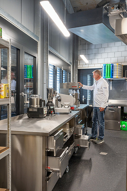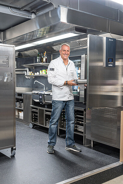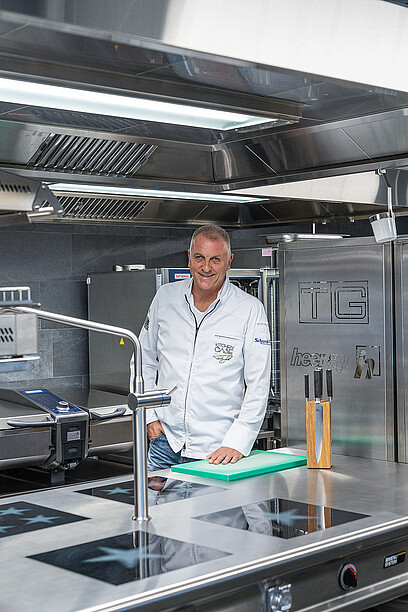 Und hier kommt nun Torsten Götz ins Spiel, als Berater, Coach und Showman, der Schulungen mit Emotionen verknüpft, Leidenschaft in die Produktion bringt. Seine Anleitungen nehmen die ganze Küche in Beschlag und können sogar das Format eines Events mit Gästen annehmen und beim Kunden stattfinden. Torsten Götz spricht von aktivem Coaching. Am liebsten bindet er die ganze Küchencrew mit ein, lenkt den Blick vom Papier lieber auf die praktische Arbeit, sie muss zur Routine werden. Und dabei geht es nicht nur, aber auch um Geräte der Heer AG Gastronomie-Einrichtungen.
