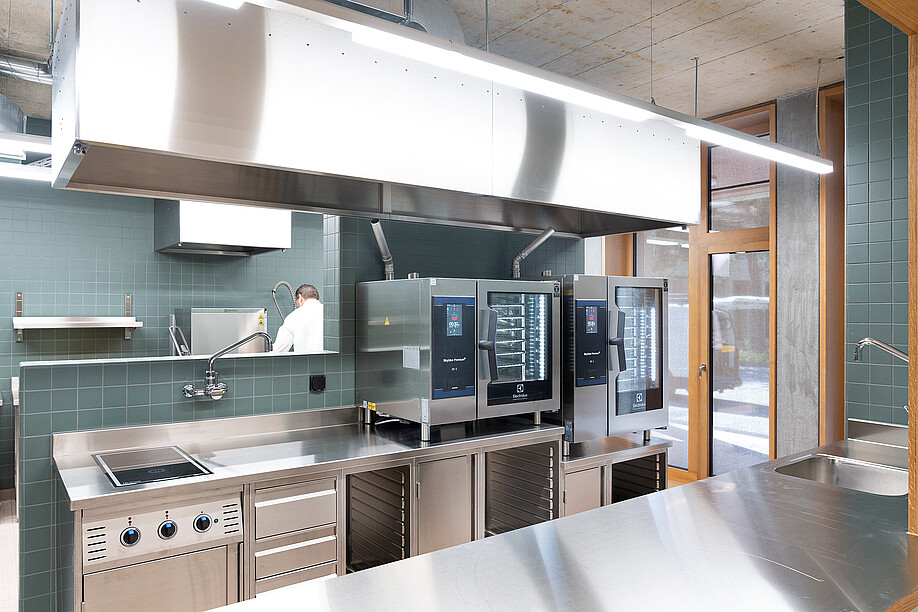 Ein gutes Beispiel in Bezug auf Langfristigkeit sind die Hygiene-Anforderungen. «Hier macht die öffentliche Hand keine Abstriche», sagt Reto Krähenbühl. «Der hohe Hygienestandard spielte auch bei der Wahl der Standardunterbauten mit Einschüben, Abstellflächen und Schubladenstöcken in der Schulküche eine wichtige Rolle. Die eingepressten Schienen sind abgerundet und lassen sich so besser reinigen. Auch die Ecostore-Kühlgeräte von Electrolux Professional verfügen über gerundete Ecken und werkzeuglos abnehmbare Führungsschienen und Auflagen aus Edelstahl für eine einfachere Reinigung des Innenraums. Oder die Haubenspülmaschine EHT «green&clean»: Mit konstanter Nachspültemperatur von mindestens 84 Grad Celsius sorgt sie für hygienisch einwandfreie Bedingungen bei restloser Entfernung von Reinigungsmittelrückständen.