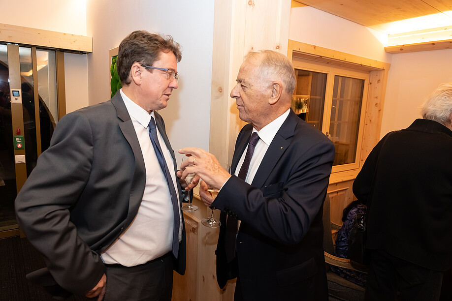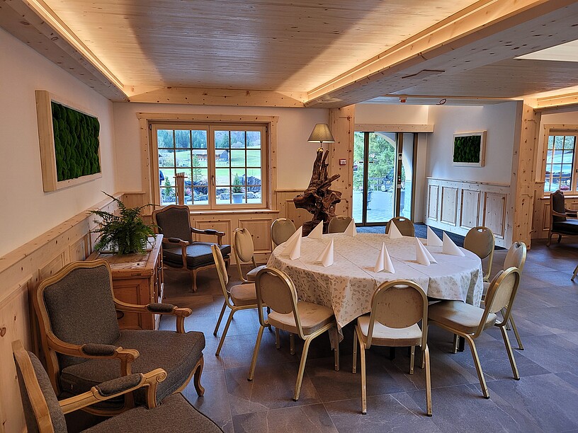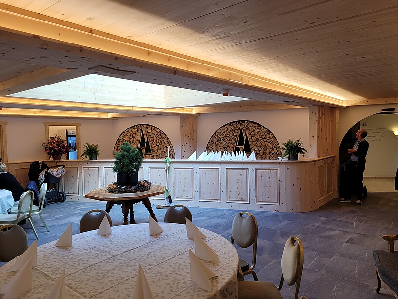 Beim Betreten des neuen Eingangs beim Waldhotel Doldenhorn fällt optisch die helle und einladende Reception aus Arvenholz auf. Die Nase riecht sofort den Geruch von frischem Holz. «Das wurde ganz bewusst so gemacht, denn wir sind ja ein Waldhotel und das soll der Gast sofort merken», erklärt Chef Patric Maeder. Ein paar Schritte weiter offenbart sich ein riesiger Raum. «Für meine Frau Anne und mich ist es ein Meilenstein in der Geschichte unseres Babys Doldenhorn. Wobei es viele Geschichten in den 46 Jahren, die Anne und ich erleben durften, zu erzählen gäbe», erklärt Senior René-François Maeder. Dass 2022 seit Planung der Bauphase 2018 nun die Einweihung gefeiert werden durfte, hat mit der Beharrlichkeit des Architekten Peter Wandfluh und René Maeder zu tun. «Peter ist nicht der Lieblingsarchitekt bei den Behörden. Er hat nicht nur geniale Ideen, er hinterfragt vieles und ist seit 46 Jahren unser Hausarchitekt», erklärt Maeder. Der Umbau war eine Arbeitsgemeinschaft zwischen, der Bauunternehmung Rösti AG in Kandersteg und Künzi & Knutti AG von Adelboden, Architekt Peter Wandfluh und Ramu Ingenieure AG in Frutigen. Das 4,5 Millionen-Projekt soll das Seminargeschäft, nicht nur in der Zwischensaison, ankurbeln.