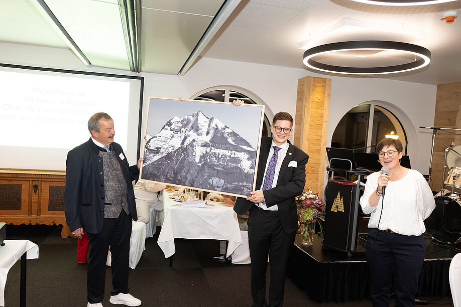 Mitte November wurde die definitive operative Übergabe an Sohn Patric Maeder und dessen Partnerin Riana Meyer vollzogen. Dies zusammen mit Gästen aus Politik, Wirtschaft, Familie und Freunden, wie z.B. Albert Rösti, Helmut und Beatrice Simon bis hin zu Alt-Bundesrat Adolf Ogi mit Gattin Katrin. Das alles lief natürlich nicht ohne Reden und Danksagungen ab. Dass dabei bei Anne und René Maeder zwischendurch ein paar Tränen kullerten, war den grossen Emotionen an diesem Abend geschuldet. Gemeindepräsidentin Barbara Jost überreichte zum Schluss ein Bild vom Doldenhorn. Der ganze Abend wurde musikalisch mit jazzigen Klängen von Franz Wosnitza, Peter Glessing, Holger Schütz und Johannes Maiß untermalt.