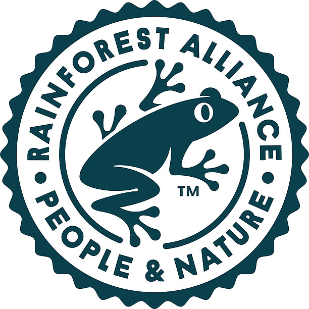 Das Rainforest Alliance-Siegel mit dem grünen Frosch steht für eine bessere Zukunft für Mensch und Natur. Auf zertifizierten Farmen müssen Menschenrechte geachtet werden – sie sollen ein sicherer Ort zum Arbeiten und Leben für alle Beschäftigten sein. Die ErzeugerInnen erhalten spezielle Schulungen zu Themen wie Gleichstellung der Geschlechter sowie zur Vermeidung von Kinderarbeit und Diskriminierung. Die Rainforest Alliance setzt sich für bessere Lebensbedingungen von FarmbesitzerInnen und ArbeiterInnen ein, indem sie beispielsweise die ErzeugerInnen bei nachhaltigeren Anbaumethoden unterstützt. Dadurch erzielen sie höhere Ernteerträge, haben geringere Kosten und können sich besser an die Folgen der Klimakrise anpassen. Zertifizierte ErzeugerInnen tragen auch aktiv zum Umweltschutz bei, z.B. durch den schonenden Umgang mit natürlichen Ressourcen, dem Einsatz von weniger Kunstdünger und Pflanzenschutzmitteln sowie Abfallvermeidung. Ebenso wird ihnen in Schulungen vermittelt, wie sie geschützte Waldgebiete und damit die Biodiversität erhalten.