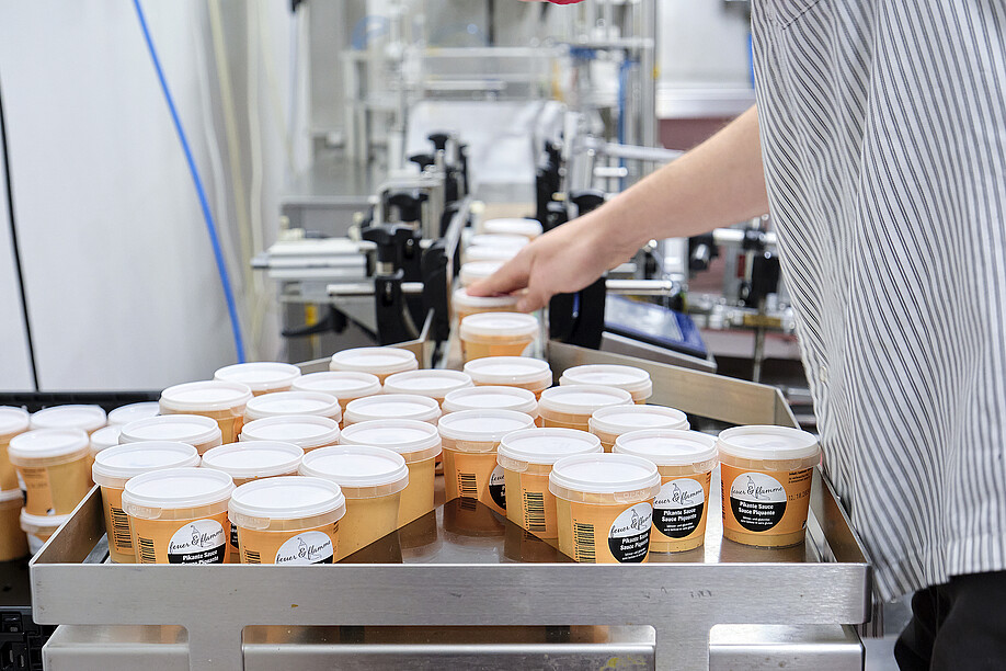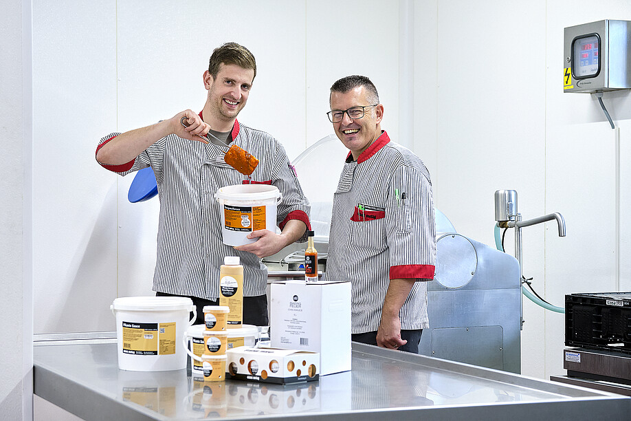 Neben dem Kerngeschäft gibt es zwei weitere wichtige Standbeine, die die Chämi Metzg seit Jahren pflegt: den Party-Service und die Herstellung von hausgemachten Saucen. Von Geburtstagsfeiern im kleinen Rahmen bis hin zu Grossevents von über 1500 Personen: Sämtliche Gerichte werden am Hauptsitz produziert. Daneben vermietet die Chämi Metzg mehrere Exemplare des nach den eigenen Vorstellungen kreierten Kanalgrills – die passenden Zutaten liefert die Chämi Metzg natürlich gleich mit. Pariser-Sauce, Tomaten-Mix, Barbecue, Zigeuner-Sauce: Im vor vier Jahren neu eingerichteten Produktionsbetrieb unweit des Hauptsitzes produzieren die Mitarbeitenden der Chämi Metzg wöchentlich rund 500 Kilogramm ihrer hauseigenen Saucen: Sie passen zu Fondue und Grilladen oder eignen sich als Dip oder Brotaufstrich. Die legendäre Pariser-Sauce, bestehend aus einem Curry-Senf-Fundament, kreierte Vater Guido vor vielen Jahren. Mittlerweile sind es 14 Saucen, die von Hand produziert, abgefüllt und etikettiert werden. Aufgrund der steigenden Nachfrage – die Saucen werden schweizweit via Metzger Center vertrieben – ist ein Ausbau der Produktion in Planung.