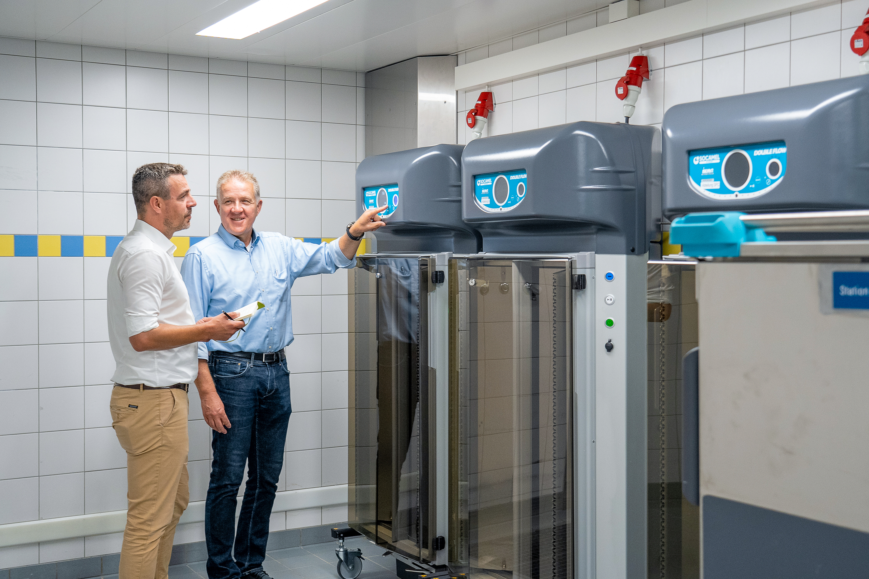 Die Speisen bleiben während des Transports in bestem Zustand – nichts läuft aus, nicht einmal die Suppe. Denn kalte Speisen haben eine festere Konsistenz als heisse. Im Engeried übernehmen dann die Andockstationen Doubleflow auf Rollen mit integrierter Heiz- und Kühltechnik. Die Speisewagen werden angedockt und die Regeneration beginnt: Kaltes bleibt kalt und Warmes wird punktgenau erwärmt – ohne Anbrennen, Aufweichen oder lauwarmes Essen. Stattdessen: perfekt heiss, genau so, wie es sein soll!