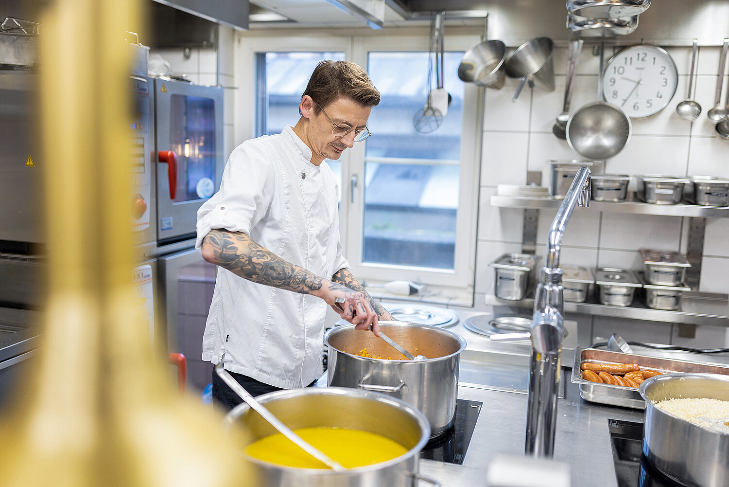 «Back to the roots: Ich koche nach wie vor wahnsinnig gerne. In der «Dreischiibe» allerdings übe ich als Bereichsleiter mehr administrative Arbeiten aus und stehe nur noch an einzelnen Vormittagen «am Herd». Aber Kochen ist einfach «geil», und am meisten geniesse ich es, wenn ich es in meinem Tempo und nach meinem Geschmack tun kann. Und so kreiere ich nebenbei immer mal wieder genussvolle Menüs an privaten Anlässen bei Personen zu Hause. Es ist nicht nur das Kochen, auch der Austausch mit den Gästen, das Näherbringen des Kochhandwerks, das mir enorm gefällt. Ich kann mir auch vorstellen, mich irgendwo einzumieten, als Pop-Up. Aber nur für einige Tage. Solche Projekte «gluschten» mich enorm.»