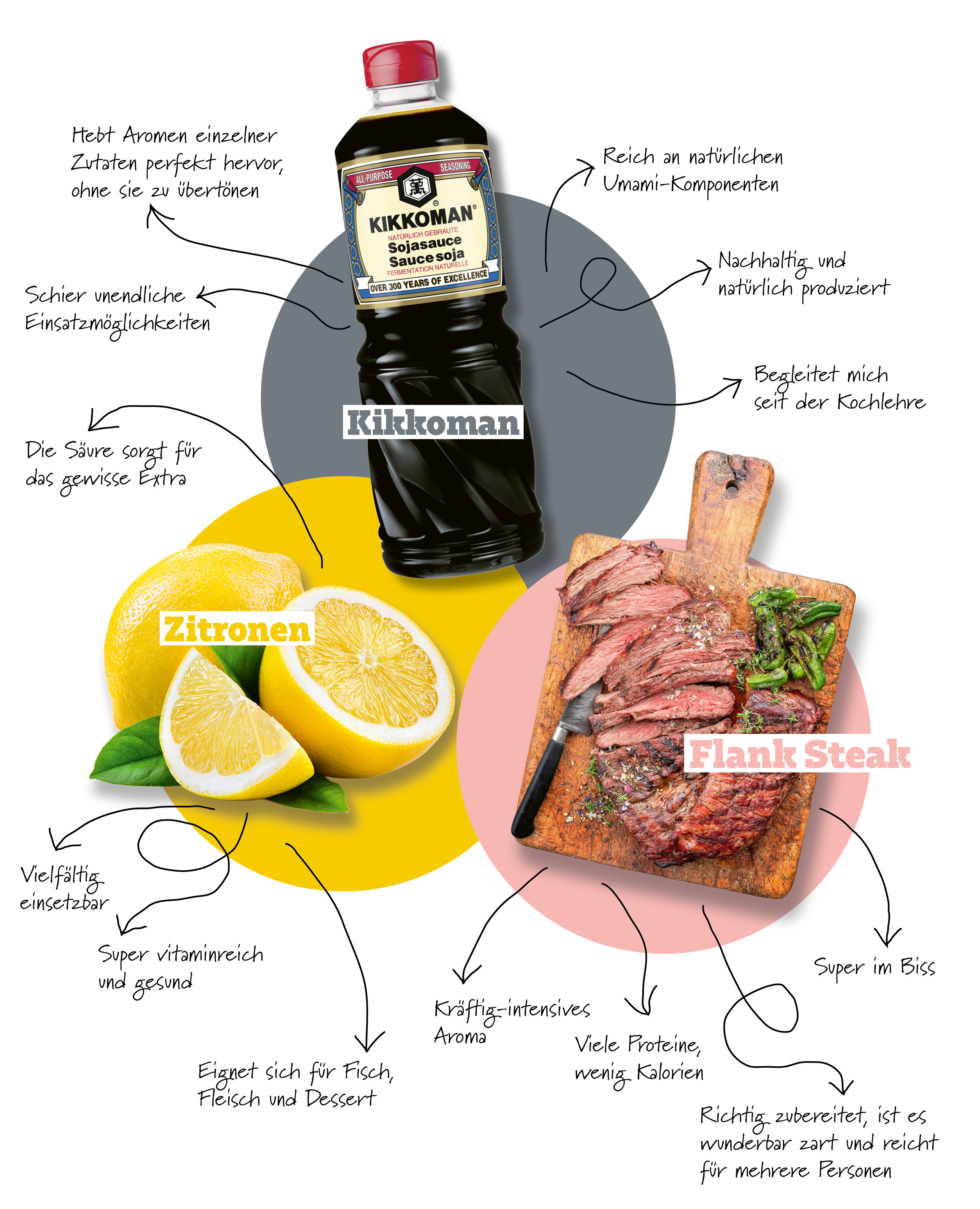 «Dass ich auf Kikkoman Sojasauce stehe, das hat sich in der «Dreischiibe» schnell rumgesprochen. Und wenn ich Dienst in der Küche habe, kann ich damit rechnen, dass mir eine Flasche Sojasauce an den Arbeitsplatz hingestellt wird. Ein «Running Gag», der sich hartnäckig hält. Natürlich verwende ich Kikkoman nicht für alles! Aber ja, ich muss gestehen, doch für vieles!»