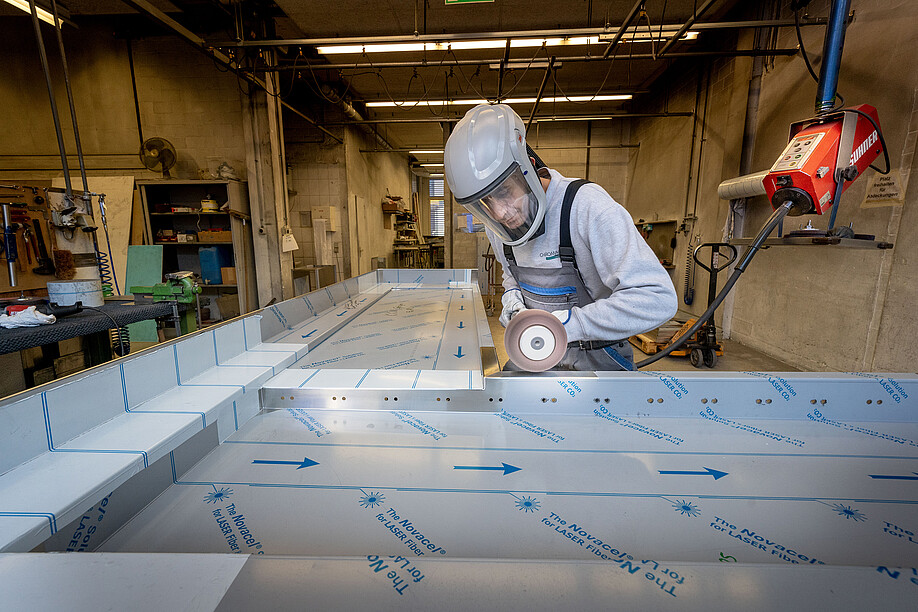 Nach der Planung werden die Küchen bei der Chromag mit neusten CAD-Programmen inklusive 3D-Visualisierungen reingezeichnet. Die herstellerneutral arbeitende Chromag beschafft die Apparaturen, während in der eigenen Produktion die Chromnickelstahlbleche mit Laser zugeschnitten, gestanzt, gekantet, geschweisst, geschliffen und poliert werden. Selbst die Schubladen mit Vollauszug werden von A bis Z aus Chromnickelstahl in Steinhausen angefertigt und zusammengebaut. «So haben wir die Qualitätskontrolle im Haus. Und wir haben ja die modernste Ausrüstung dazu.»